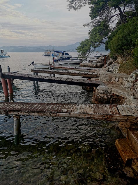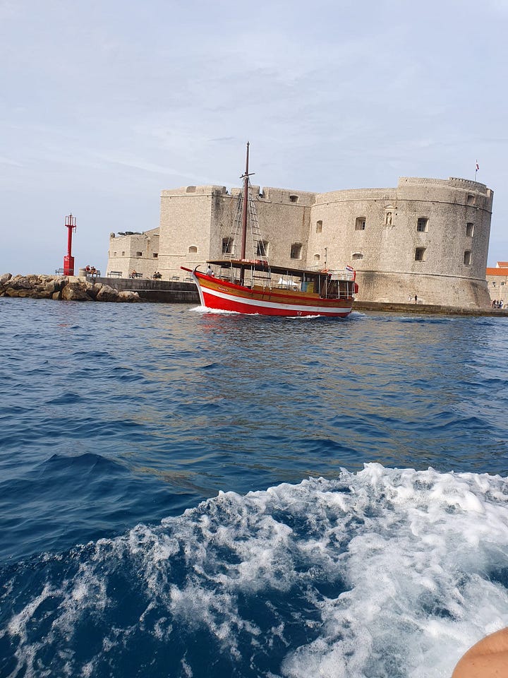 One morning when they announced a rainy day, we decided to travel by boat to Dubrovnik. We were picked up by a small passenger ship, red in color with yellow stripes and a nice brown wooden roof. The ship engine was loud, but it didn't bother my little one who slept part of the way. On the way back, the same ship picked us up and this time we crossed the sea a little wildly. The rain fell, the sky turned dark gray, and the waves decided to get big and fast. We heard the waves lapping at the ship and we were bouncing in our seats. There were at least ten other passengers sitting on those white wooden seats. On the way back, the bow of the ship was filled with the loud stories (because loud boat engine and a bit of storm on the sea) of five older ladies who, with sweaters on their shoulders, curly short hair, scarves around their necks and smiles on their faces, shared some adventure tales. Their faces seemed happy and fulfilled, and their eyes were full of a long life lived and many memories. In a moment, I could imagine myself on that seat, with chunky dark blue sweater and the same short hairstyle as now, looking at the rolling sea, listening to the lapping of the waves and enjoying life now and ahead of me. In that moment of my imagination, the little one was sleeping in my lap, holding my shirt tightly with that little tender hand. Here and there a drop of seawater would land on his cheeks, and I would gently, almost imperceptibly, remove them with my finger. Imagining myself as an old woman, I also imagined his life, his childhood and growing up. The one in which I want to be fully present and teach him to seek above all simplicity, modesty and kindness.
