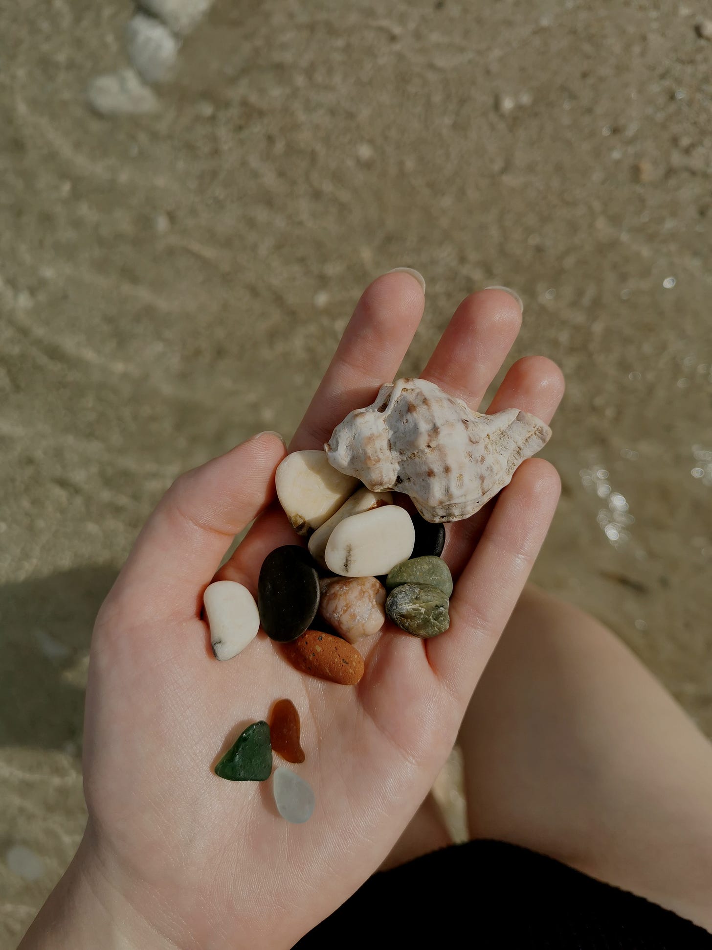 We spend our mornings on the beach, swimming, looking for pebbles and shells, walking in the shallows and going on a pedal boat. When entering the sea it seems cold, but just a few strokes away the touch of sea is warm. I turn on my back and float. I simply let the water move me as I observe the bright sky. The stones on the shore are multi-colored and firmly laid next to each other as if protecting each other from large waves. Black with white dots, brown with yellowish stripes, shiny round white, perfectly round black, pink, greenish blue. Whenever you pick one up, it is beautiful and you want to keep it for some memory. And because we stand to our decision of buying no souvenirs, I think pebbles and shells will become one for this little summer memory.